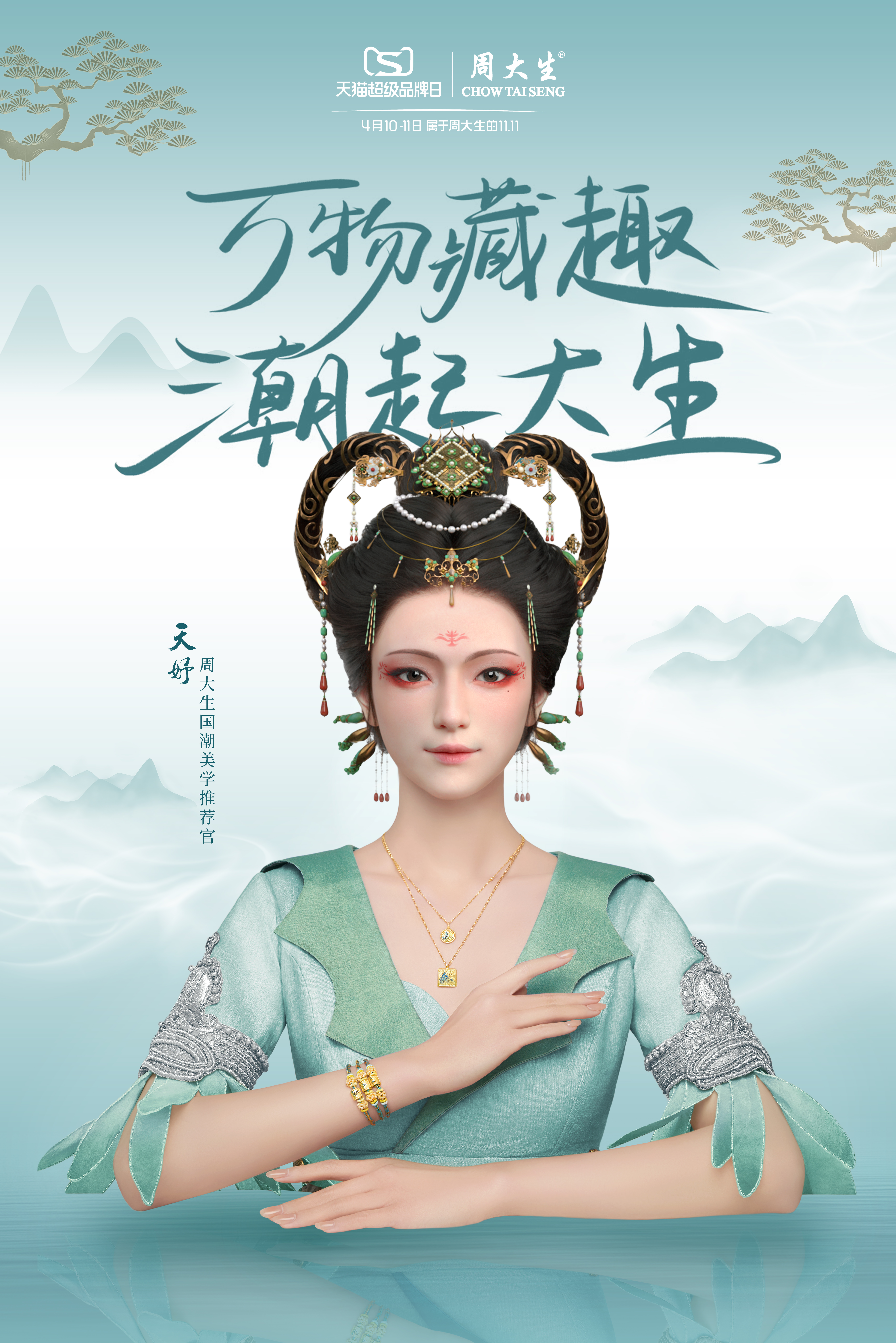萬物藏趣,潮起大生,“妤”生有你,未來可期。4月7日,天娛數(shù)科打造的首個(gè)國風(fēng)虛擬數(shù)字人天妤化身為國潮美學(xué)推薦官,攜手國內(nèi)知名珠寶品牌周大生,在春暖花開之際為廣大消費(fèi)者獻(xiàn)上了以