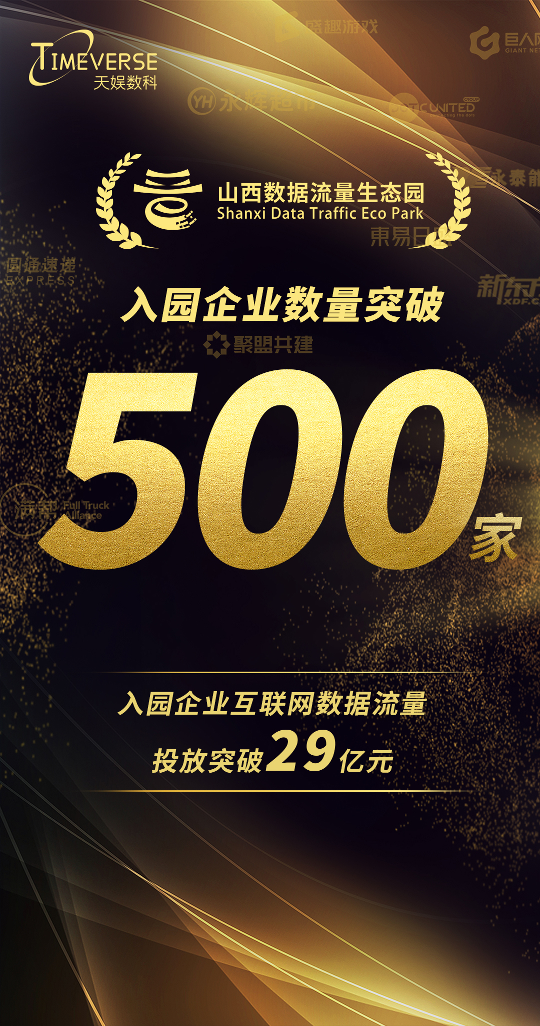 近日,天娛數(shù)科子公司山西數(shù)據(jù)流量生態(tài)園入園企業(yè)數(shù)量正式突破500家。新華網(wǎng)、人民網(wǎng)、中國日報(bào)、中新網(wǎng)、中國網(wǎng)、山西日報(bào)、山西經(jīng)濟(jì)日報(bào)、中宏網(wǎng)等20余家主流媒體爭相報(bào)道,